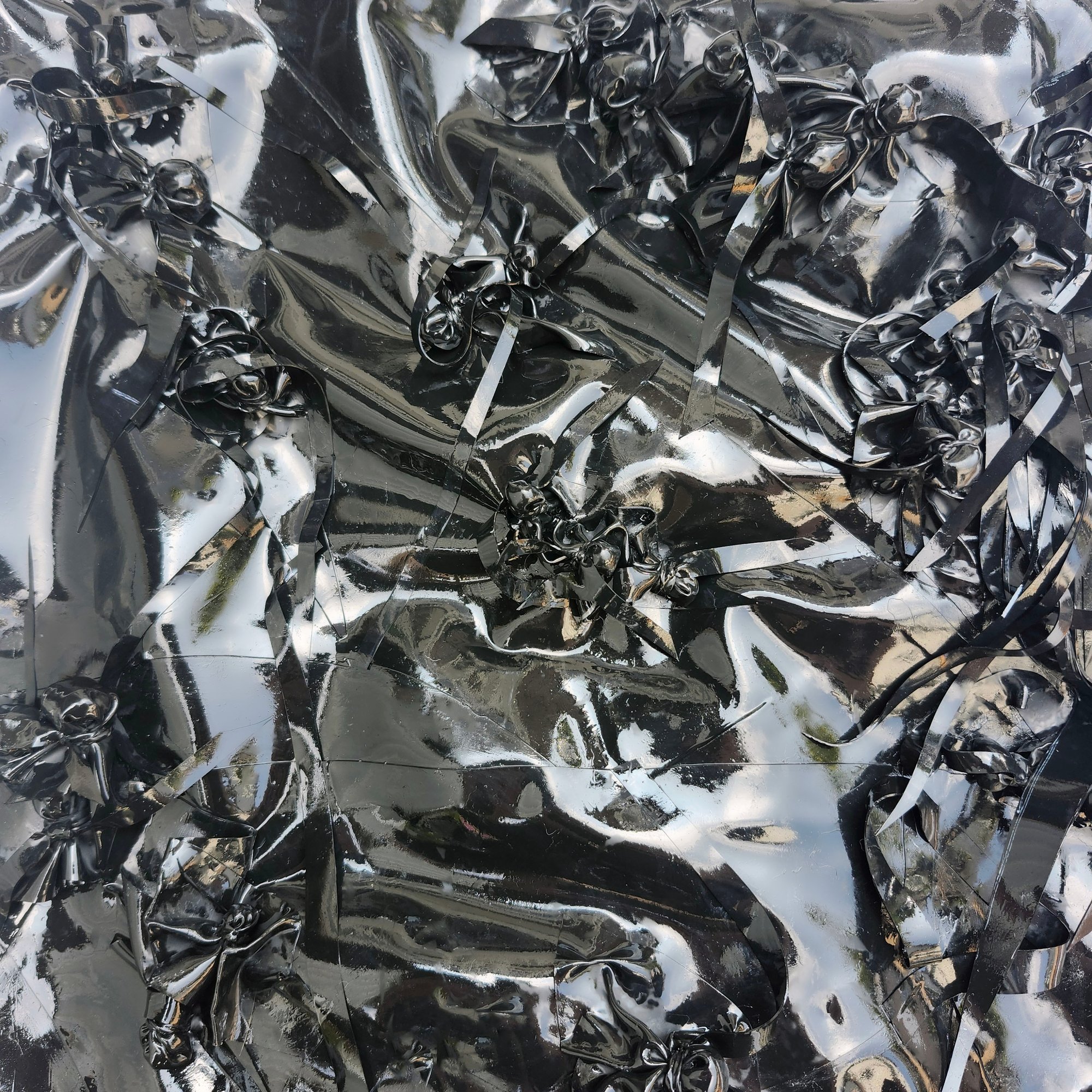This large tote bag was born out of a need and desire to utilize specially selected scrap pieces of latex that would otherwise be sent to a landfill. Truly one of a kind, this bag is constructed in a patchwork with various grades of latex and shapes.