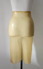 The Lovesick pencil skirt is a sleek and modern nod to the pencil skirts of the past like in the 1960s. The below- the- knee hem gives a more modest look but it also creates a bit of a restriction for the wearer for walking. Make no mistake, the wearer can certainly walk in this skirt, but we aimed to create a fit that tightly packages the goods. The design of the skirt is for a fitted and modern vintage look.