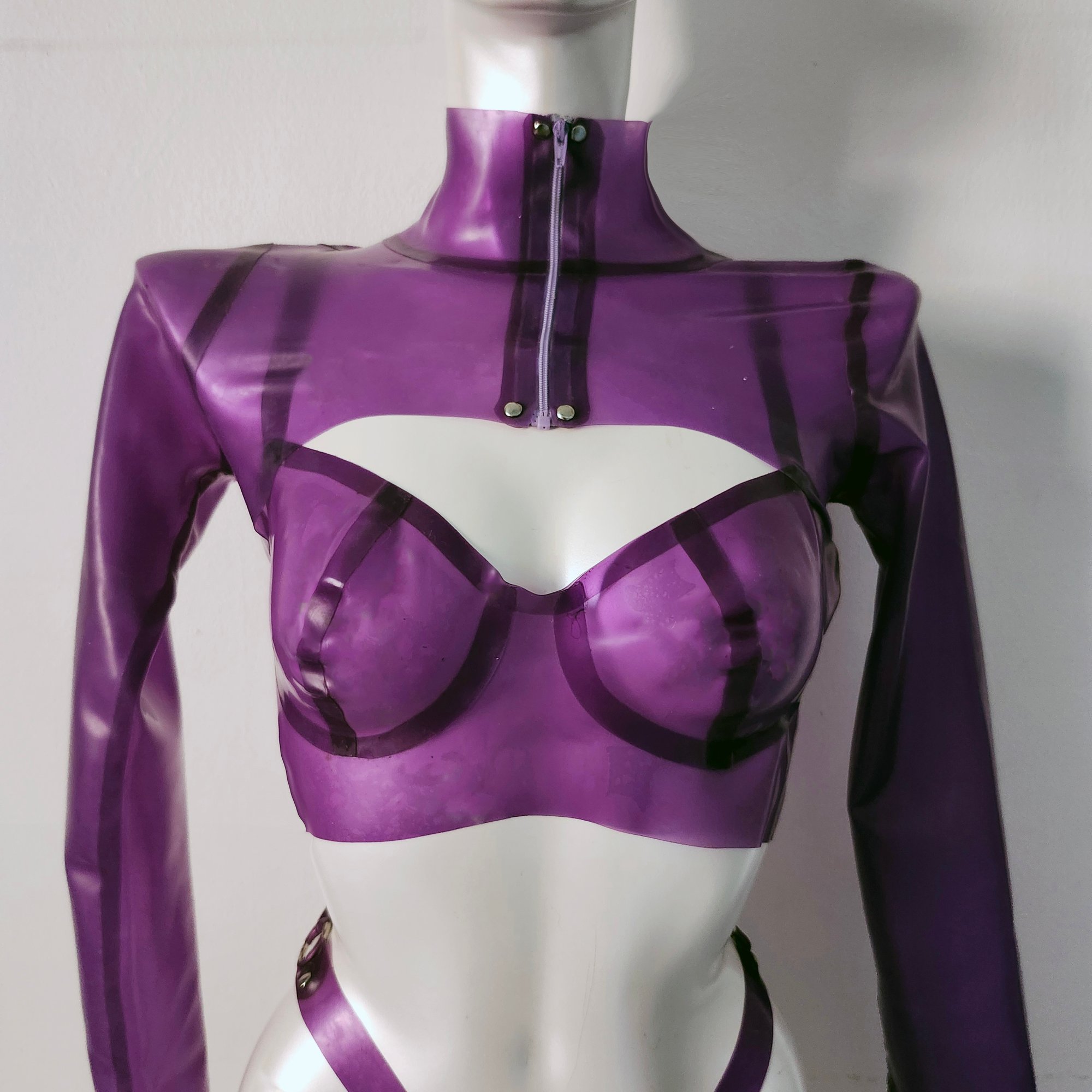 The Undine Bra is made from a sumptious semi sheer purple latex.